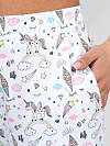 Уютный костюм не только для дома, но и за его пределами из приятного и нежного трикотажного полотна - интерлок. Очень стильная однотонная майка - борцовка ослепительно открывает красоту тела, акцентируя лопатки и плечи. По центру спины проходит широкая бретель, эффектно переходящая на две спереди. В жаркую летнюю погоду украсит и выручит Вас в комплекте с любым низом, а также пригодится в спортивной жизни. Штаны длинные и свободные, на высокой посадке с комфортной тройной резинкой, с карманами в боковых швах и угловым срезом. Удаленка изменила наш стиль, простота и практичность пришли на смену узким брюкам. Очень качественная ткань из натуральных волокон, прочная, не линяет и не теряет форму после частых стирок, хорошо впитывает и пропускает влагу, поддерживает тепло. А забавный принт с единорогами создаст веселое настроение. Делайте выбор в пользу удобства и комфорта!
