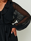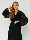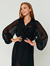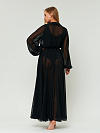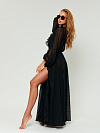 Пляжное платье (парео) черное с длинным втачным рукавом на резинке, грациозное и изящное. Креп-шифон, 100% полиэстер, с рисунком "мошка". Длина - в пол, с глубоким запахом и поясом. По талии отрезное, присборенное. Вдоль полочек воланы. Для приятного контакта с кожей мы сделали все швы закрытыми. В коллекции насыщенные и нежные цвета. Вместе с купальником смотрится чувственно и притягательно. Подчеркивает достоинства и делает обладательницу соблазнительной. Вы будете не только в центре внимания песочного пляжа, но и в кафе на берегу моря. Этот подарок для отдыха выделит Вас среди многих!