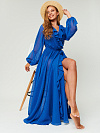 Пляжное платье (парео) синее с длинным втачным рукавом на резинке, грациозное и изящное. Креп-шифон, 100% полиэстер, с рисунком "мошка". Длина - в пол, с глубоким запахом и поясом. По талии отрезное, присборенное. Вдоль полочек воланы. Для приятного контакта с кожей мы сделали все швы закрытыми. В коллекции насыщенные и нежные цвета. Вместе с купальником смотрится чувственно и притягательно. Подчеркивает достоинства и делает обладательницу соблазнительной. Вы будете не только в центре внимания песочного пляжа, но и в кафе на берегу моря. Этот подарок для отдыха выделит Вас среди многих!