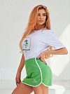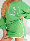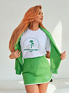 Очаровательная и соблазнительная мини-юбка спортивная из зеленого футера 2-х нитки с принтом "теннисные ракетки". На широкой резинке с удобной посадкой, легко надевается, без застежек и пуговиц, без карманов. Отделка белым кантом акцентирует внимание на красивых очертаниях и спасает от растяжения ткани. Слегка трапециевидная модель, сексуальная и комфортная, по бокам закругленные разрезы. Прекрасно корректирует фигуру и подчеркивает красоту Ваших ног. Очень качественное полотно, без начеса, по составу хлопок с небольшим содержанием полиэстера, который добавляет изделию эластичности. Для активной жизни, а также для городских образов, прогулок и дружеских встреч, для пляжной моды. Создавайте стильные и женственные ансамбли со свитшотом из нашей коллекции в тон или контраст. Демонстрируйте свою форму, оставляя загадочный шлейф восторженных глаз!
