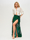Потрясающая летняя макси-юбка в стиле бохо, с запахом, станет самой необходимой вещью Вашего отпускного гардероба. Пояс притачной, на завязках с внутренней застежкой на две пуговицы. Нежная темно-зеленая вискоза, приятная на ощупь, легкая и мягкая, гигроскопичная, с высокими гигиеническими качествами и очень привлекательная на вид. Полотно буквально дышит и быстро сохнет. Принт из цветочных лиан и веток выигрывает при создании бодрых солнечных луков. Это не только курортный образ. Эффектно смотрится с рубашкой, топом и даже с курткой. Подчеркивает женственность и красоту Ваших ног. Подходит для вечернего ужина и романтического свидания. И не обязательно увозить с собой в отпуск половину гардероба!
